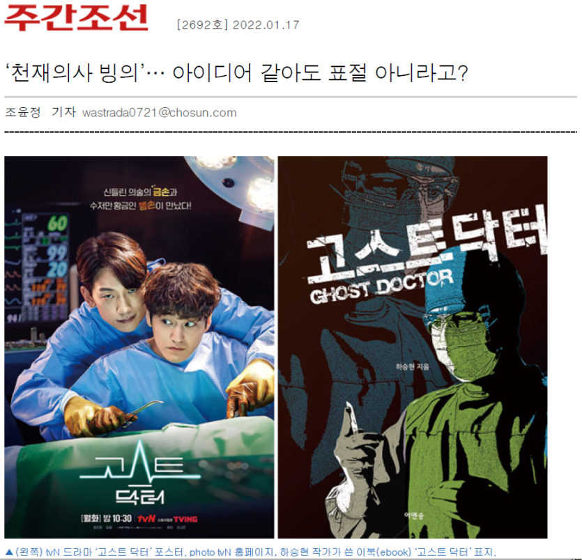 시시비비는 아직 가려지지 않았지만, 두 작품은 천재의사가 누군가의 몸에 빙의한다는 특이한 설정이 같은 데다 제목까지 같아 논란이 됐다. 사실 드라마 업계에서 표절 의혹은 하루가 멀다 하고 불거져왔다. 공모전 등을 통해 방송국이나 제작사가 손쉽게 수많은 작가의 아이디어를 접할 수 있는 데다가, 극본의 유사성을 판단하는 저작권법 기준이 명확하지 않은 탓이다.